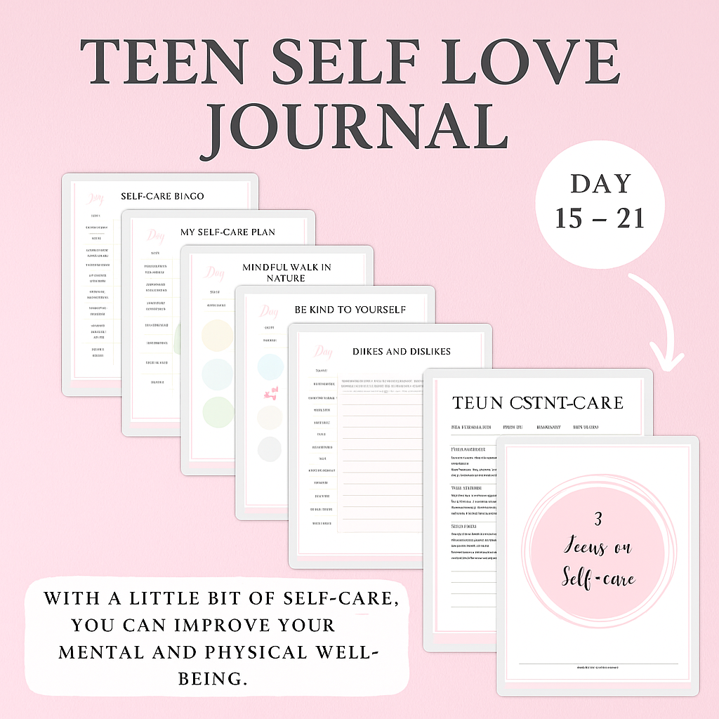 A guided 21-day self-love journal designed for teen boys to build confidence, self-awareness, and daily self-care habits with reflection pages and engaging prompts.